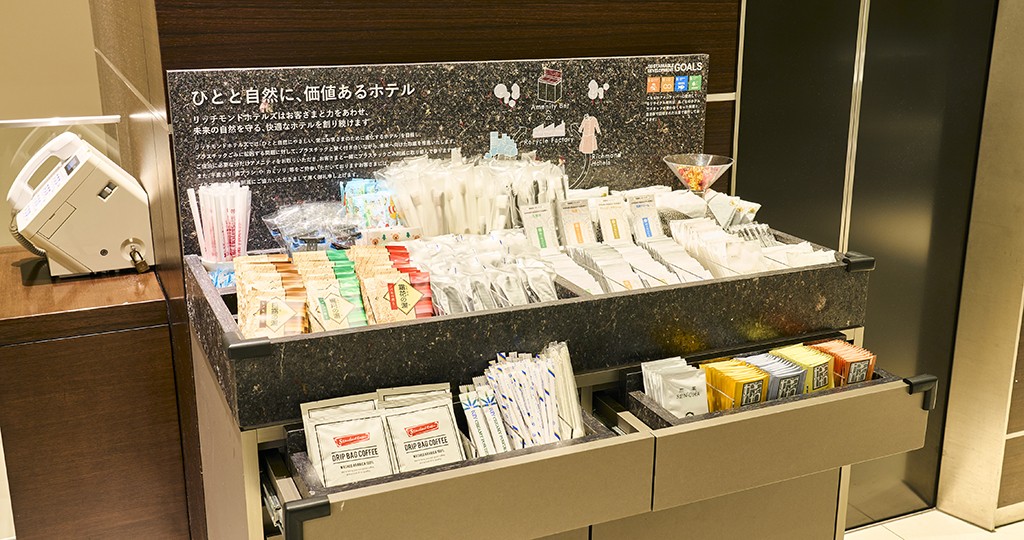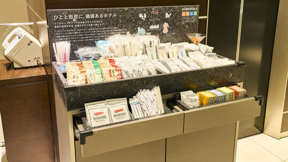 フロントのアメニティバーから必要な物をご利用くださいませ。