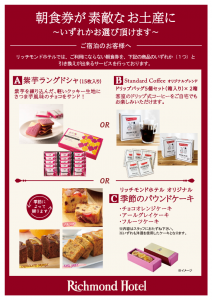 リッチモンドホテルズではご利用にならない朝食券を、お土産に交換できるサービスを行っております。