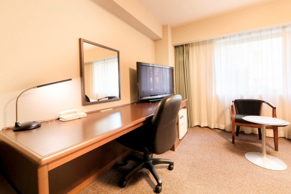 ホテルでのデスクワークをより快適に行って頂く為、書類とノートPCを広げても余裕のワークスペースを確保しております。明るいお部屋と広いデスクはお仕事に最適です。もちろん全室インターネット接続は無料です。LANケーブルもご用意しております。