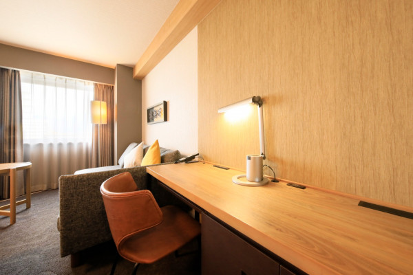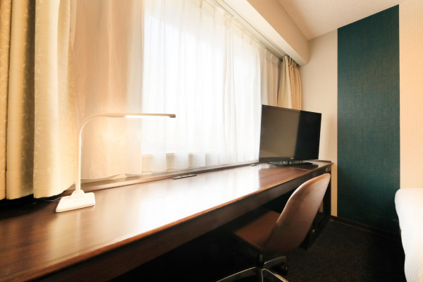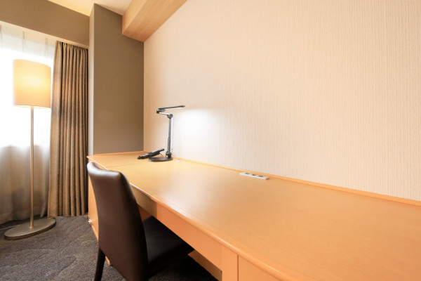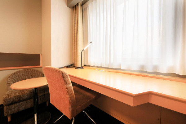ホテルでのデスクワークをより快適に行って頂く為、書類とノートPCを広げても余裕のワークスペースを確保しております。明るいお部屋と広いデスクはお仕事に最適です。 もちろん全室インターネット接続は無料です。LANケーブルもご用意しております。