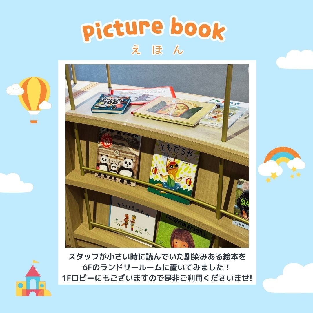 今回、6階ランドリールームにも絵本を設置いたしました♪