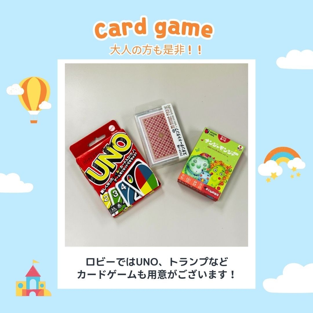 ロビーには絵本やカードゲームなどの貸し出し品もご用意しております。