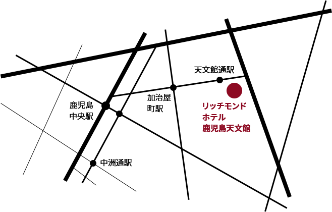 AccessGood locationリッチモンドホテル 鹿児島天文館は、鹿児島市内の中心地に位置しアクセス抜群。