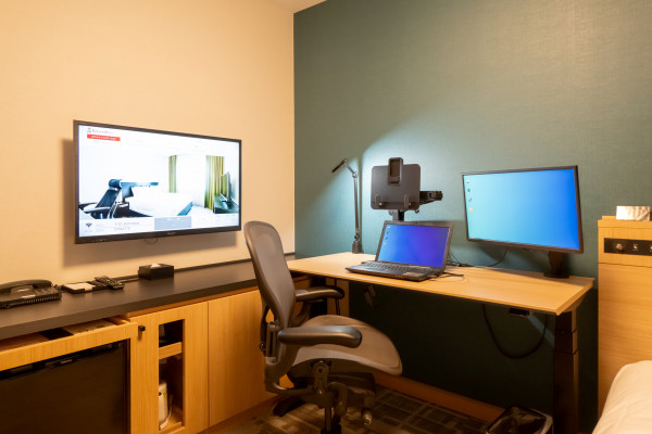 書類とノートPCを広げても十分なスペースを確保できるよう、大型デスクを設置。広々とご利用いただけます。