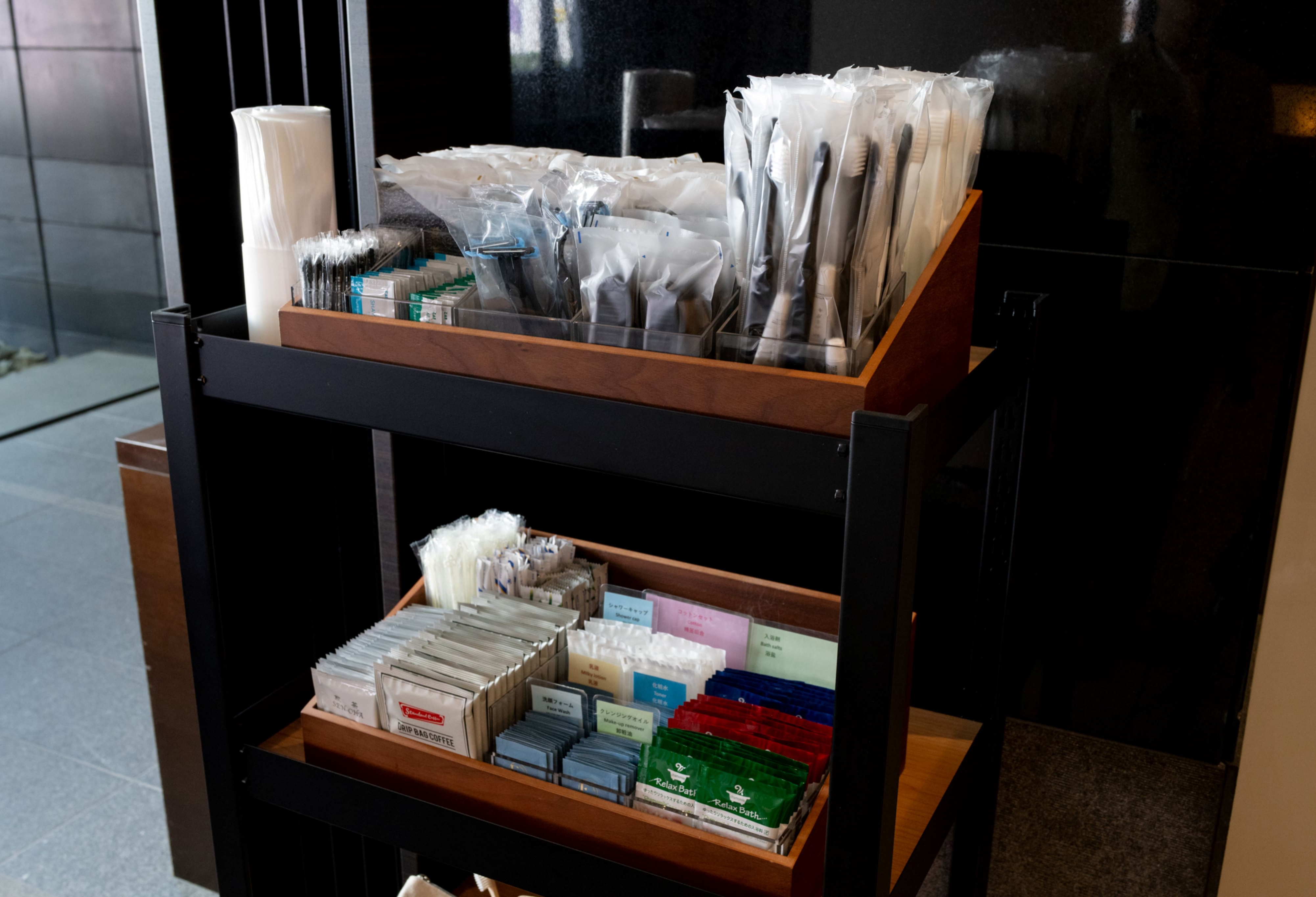 歯ブラシセット / 髭剃りセット / ヘアブラシ(プラスチック製) / ボディタオル / 綿棒 / 入浴剤 / コットン / メイク落とし / 洗顔 / 化粧水 / 乳液 / シャワーキャップ / ドリップ式コーヒー・緑茶(無料)