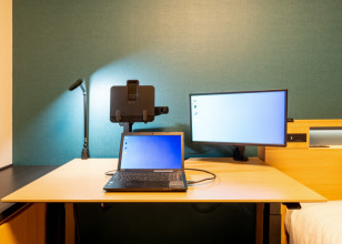 お手持ちのPCやタブレット(※)と接続可能な外部モニター、タブレットスタンドを設置。