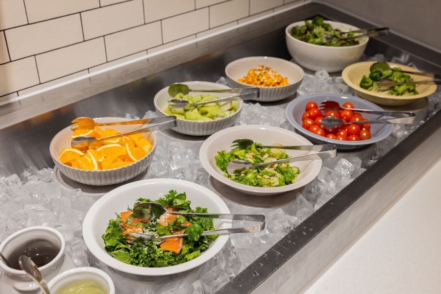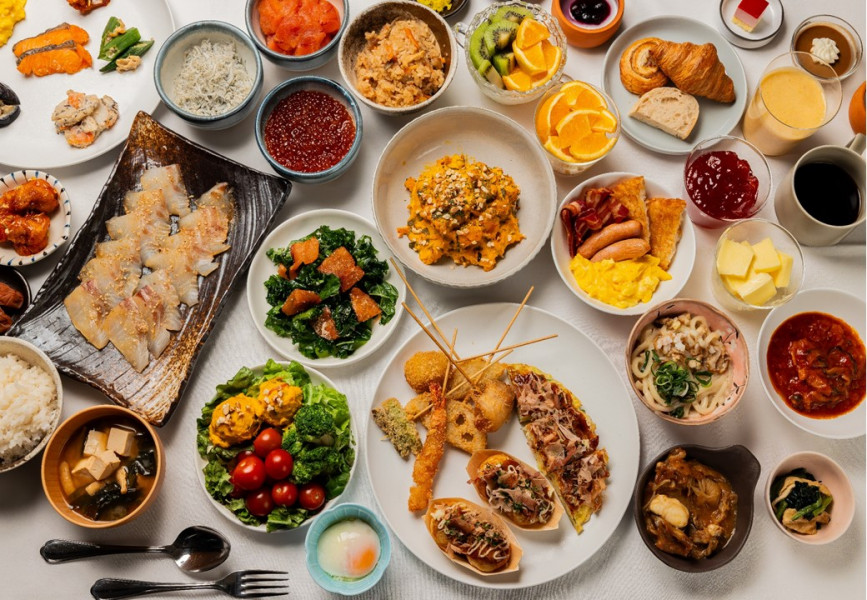 ごはん、パンはもちろんのこと、揚げたての串カツ、ライブキッチンで提供するお好み焼き、熱々のかすうどんなど大阪の郷土料理も多数ご用意しております。サラダやデザートもお楽しみいただけますので、ホテル自慢の朝食をお召し上がり下さいませ。