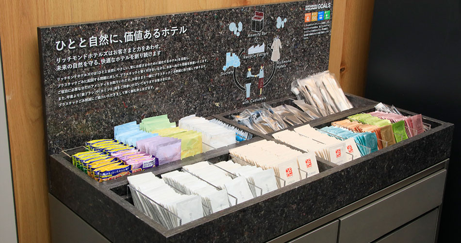 また使用する器具自体も、従業員が着用しなくなった制服等を材料に作られています。アメニティーバーを通して、お客様と力を合わせて、より良い未来を創ってまいります。