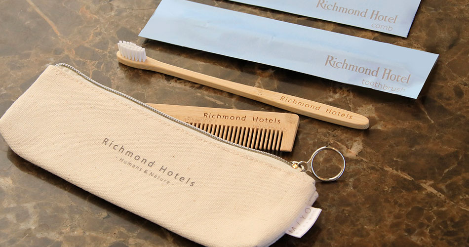 取り扱うアメニティには、「美」しい地球を、次の「世」に。を掲げ、プラスチックの使用を極力控えたMiYO ORGANICの竹製の製品を使用し、環境への負荷削減を目指しています。